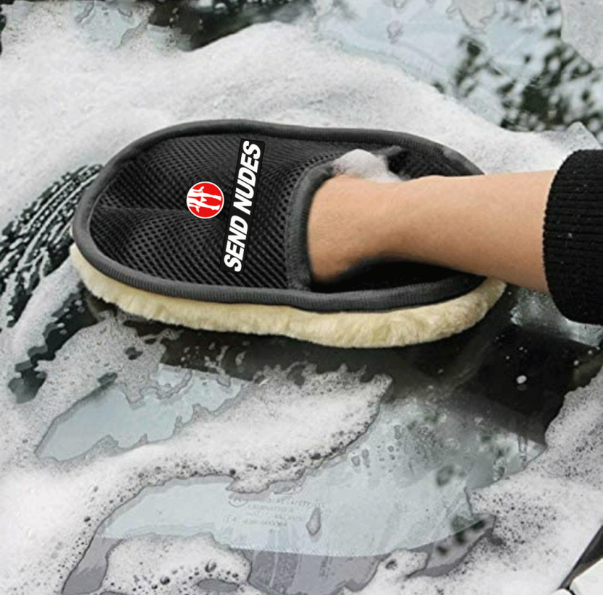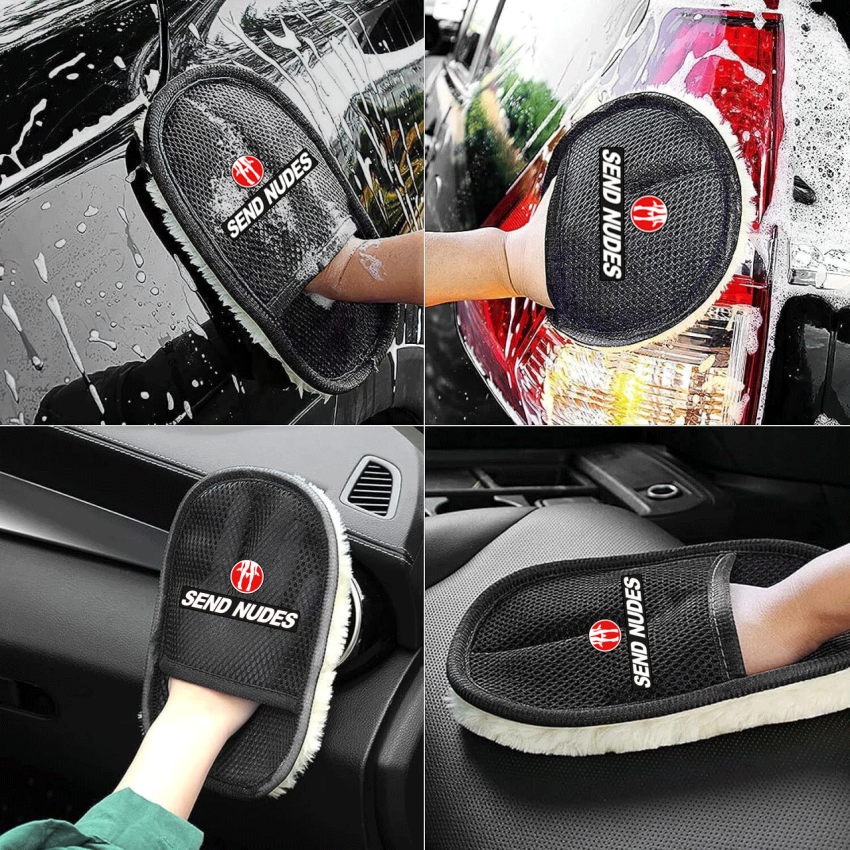 - Badge Printed Synthetic Wool Hand Wash Mitt Glove Car Cleaning Detailing Polising Microfibre