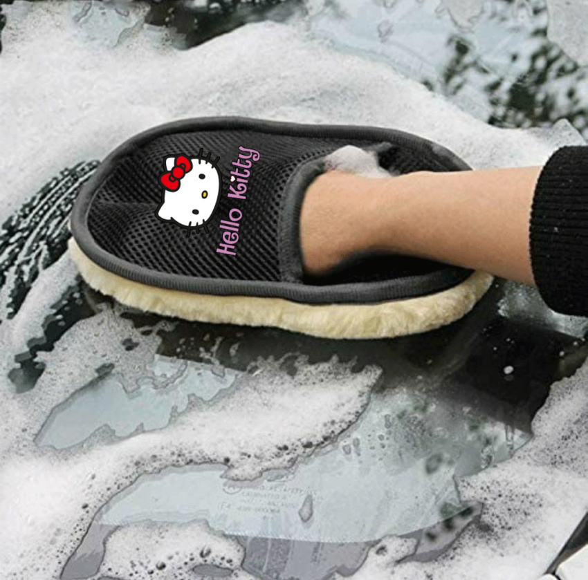 - Badge Printed Synthetic Wool Hand Wash Mitt Glove Car Cleaning Detailing Polising Microfibre